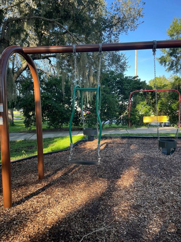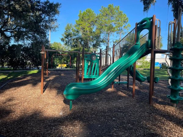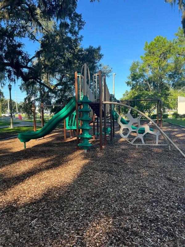 This park just recently got an upgraded playground! It is still sparkling and ready for climbing. There is a convenient sidewalk around the playground for walking, scooting, and rolling in different kid-sized transportation! There are also baseball fields, pavilions for rent or first come first serve, and a public bathroom!